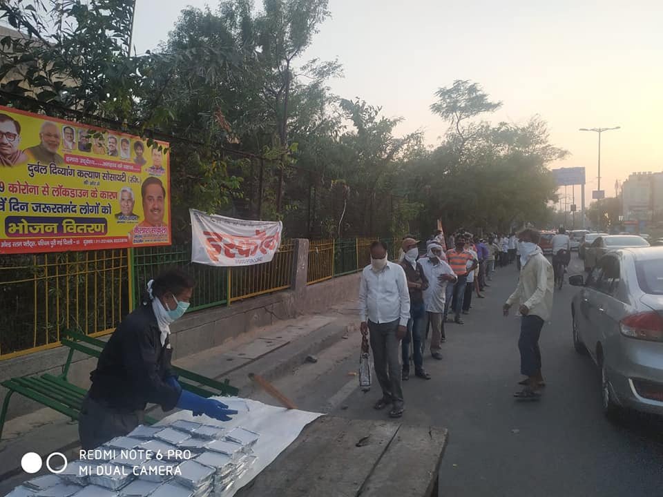 आज दिनांक 21 मई 2020 को परमपिता परमेश्वर की असीम कृपा से आज 56 वें दिन शाम को भी दुर्बल दिव्यांग कल्याण सोसायटी के तत्वाधान हजारों जरूरतमंदों को भोजन वितरण किया गया।