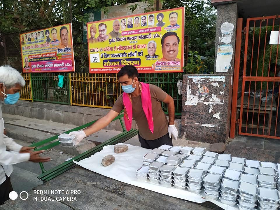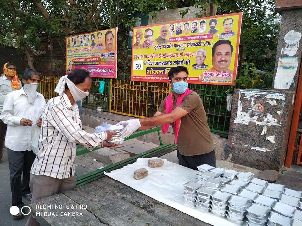 आज दिनांक 24 मई 2020 को परमपिता परमेश्वर की असीम कृपा से आज 59 वें दिन शाम को भी दुर्बल दिव्यांग कल्याण सोसायटी के तत्वाधान हजारों जरूरतमंदों को भोजन वितरण किया गया।