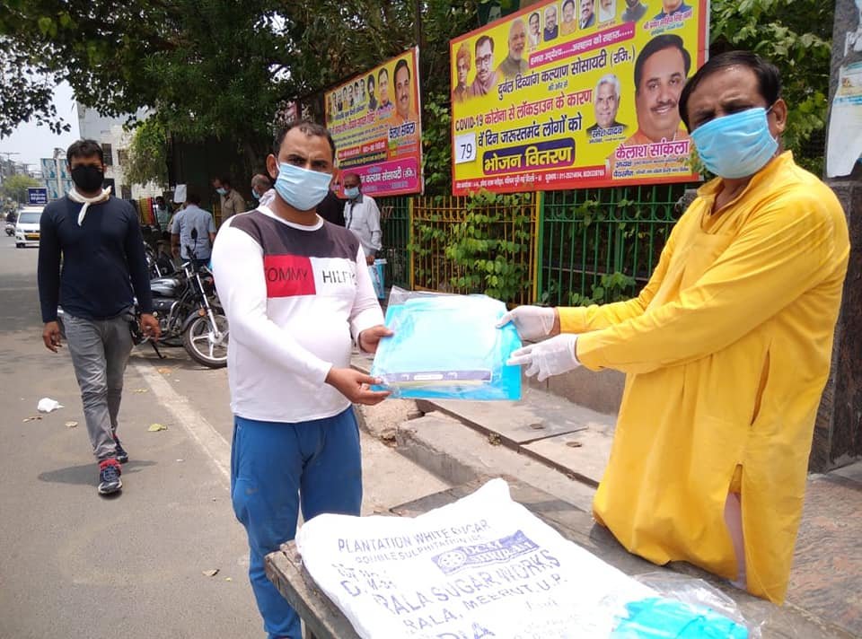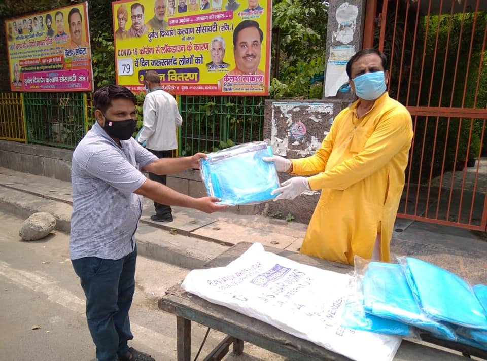आज दिनांक 13 जून 2020 को 79 वें दिन भी दुर्बल दिव्यांग कल्याण सोसायटी के तत्वाधान PPE किट एवं मास्क नगर निगम स्वास्थ्य कर्मचारियों को बांटे गए ये वो कर्मचारी है जो कंटेन्मेंट जोन में भी घरों में सेनेटाइजर का कार्य करते है या जो मरीज कोरोना पोजटिव पाया जाता है उनके घरों में सेनेटाइज का कार्य करते है।