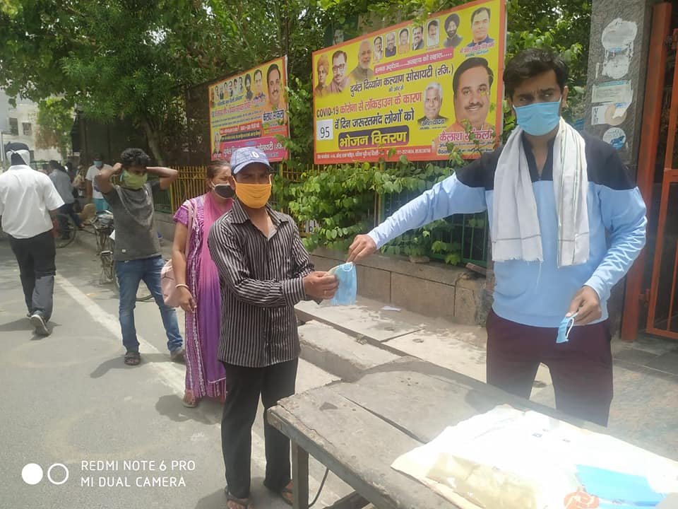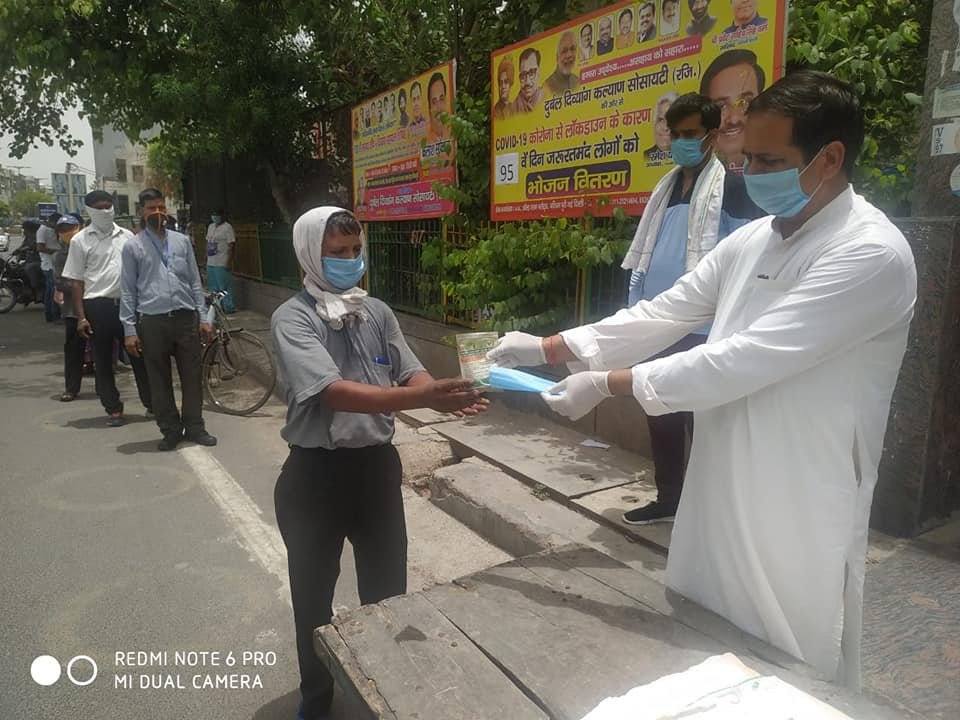 आज दिनांक 29 जून 2020 को 95 वें दिन दुर्बल दिव्यांग कल्याण सोसायटी5 तत्वावधान में आयुष विभाग द्वारा बताये आयुर्वेदिक काढ़ा, हैंड सेनेटाइजर व मार्क्स वितरण किए गए।