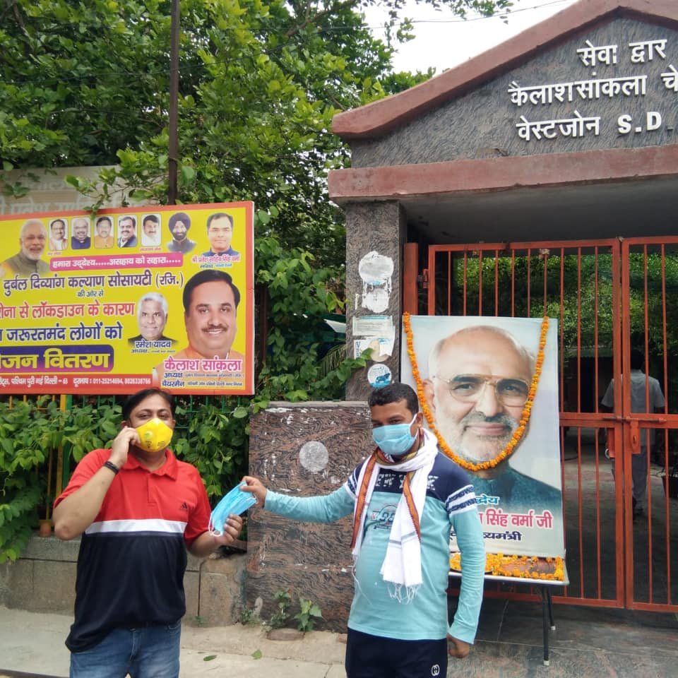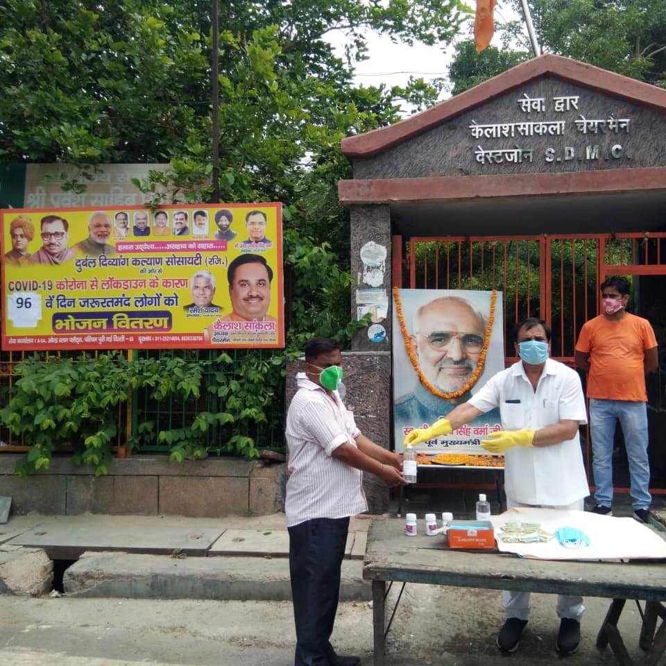 आज दिनांक 30 जून 2020 को दिल्ली के पूर्व मुख्यमंत्री श्रद्धेय डॉ. साहिब सिंह वर्मा जी की 13वीं पुण्यतिथि पर पुष्पांजलि अर्पित करके दुर्बल दिव्यांग कल्याण सोसायटी द्वारा 96 वें दिन आयुर्वेदिक काढ़ा, मास्क एवं हैंड सैनिटाइजर वितरण करके श्रद्धांजलि अर्पित की गई।