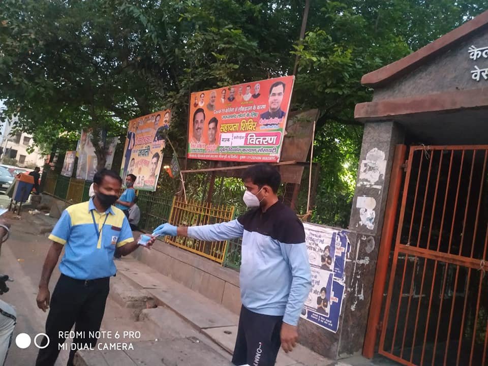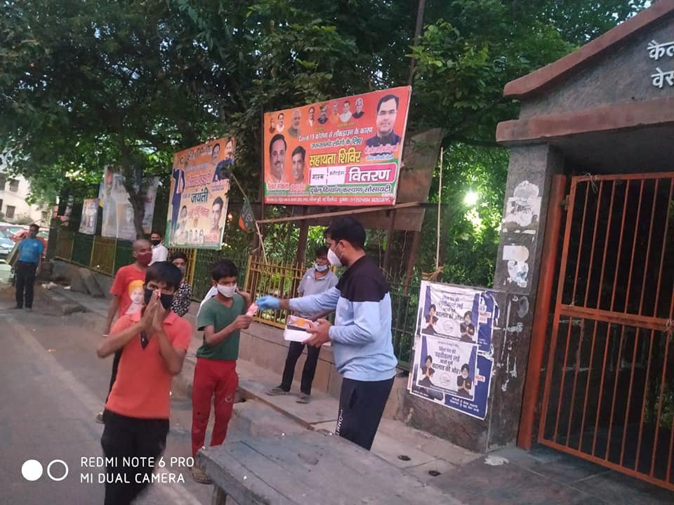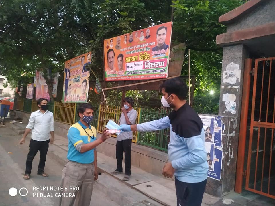 आज दिनांक 26 अप्रैल 2021 को परमपिता परमात्मा की असीम कृपा से दुर्बल दिव्यांग कल्याण सोसायटी के तत्वाधान करोना पार्ट 2 में भी जरूरतमंद लोगों को खाद्य समग्री, सैनिटाइजर, मास्क वितरण करते हुए।