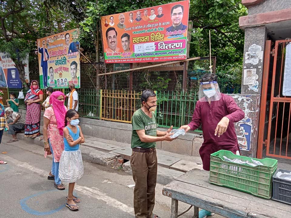 आज दिनांक 13 मई 2021 को कोरोना संकट काल लॉकडाउन पार्ट - 2 में दुर्बल दिव्यांग कल्याण सोसायटी के तत्वाधान में पंजाबी बाग क्लब रोड पेट्रोल पंप के सामने सेवा कार्यालय पर दिहाड़ी मजदूरों, दिव्यांग व्यक्तियों, सीनियर सिटीजन एवं कोरोना से पीड़ित परिवारों, जरूरतमंद लोगों को हाईजैनिक तरीके से तैयार किए गए भोजन एवं सुखा राशन, मास्क तथा सैनिटाइजर वितरण किए गए ।