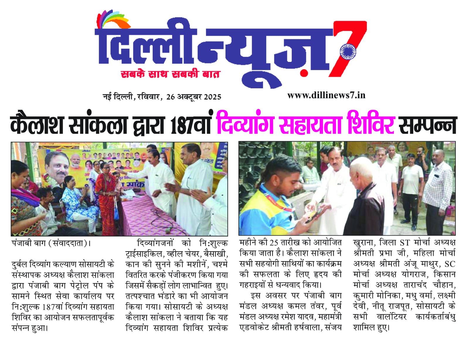 दुर्बल दिव्यांग कल्याण सोसायटी द्वारा 187 वा सहायता शिविर के आयोजन की समाचार में प्रकाशित खबरें !