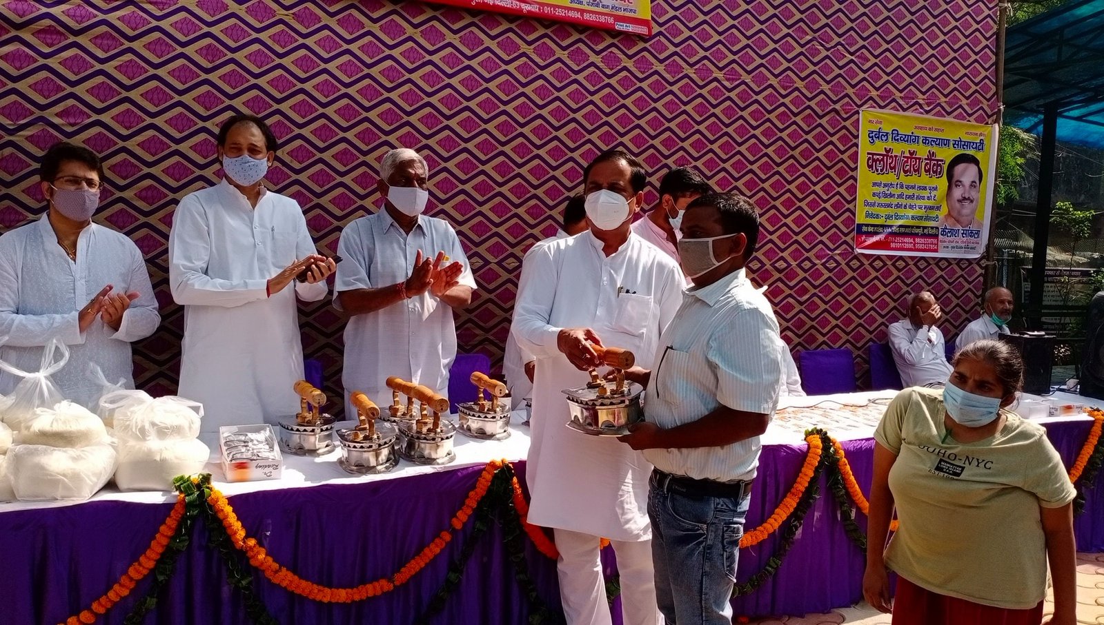 आज दिनांक 25 अक्टूबर 2020 को विजयादशमी के उपलक्ष्य पर यशस्वी प्रधानमंत्री #आदरणीय_श्री_नरेंद्र_मोदी_जी के ड्रीम प्रोजेक्ट #आत्मनिर्भर_भारत के तहत दुर्बल दिव्यांग कल्याण सोसायटी के अध्यक्ष पंजाबी बाग से निगम पार्षद #श्री_कैलाश_सांकला_जी द्वारा सेवा कार्यों के #212_दिन पूर्ण होने पर #सहायता_शिविर का आयोजन किया गया' जिसमें दिव्यांग व्यक्तियों को व्हील चेयर, मोदी किट खाद्य सामग्री, प्रैस, फेस मास्क, हैंड सेनीटाइजर एवं आयुर्वेदिक काढ़ा वितरण किया गया ।