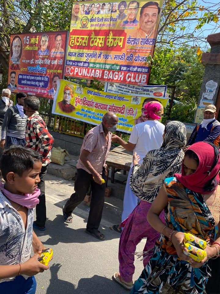 आज दिनांक 30 मार्च 2020 दुर्बल दिव्यांग कल्याण सोसायटी के तत्वाधान प्रतिदिन सैकड़ों दिहाड़ी मजदूर एवं जरूरतमंदों को खाने की सामग्री एवं रोजमर्रा की जिंदगी जरूरत में आने वाली चीजें दी जा रही है।
