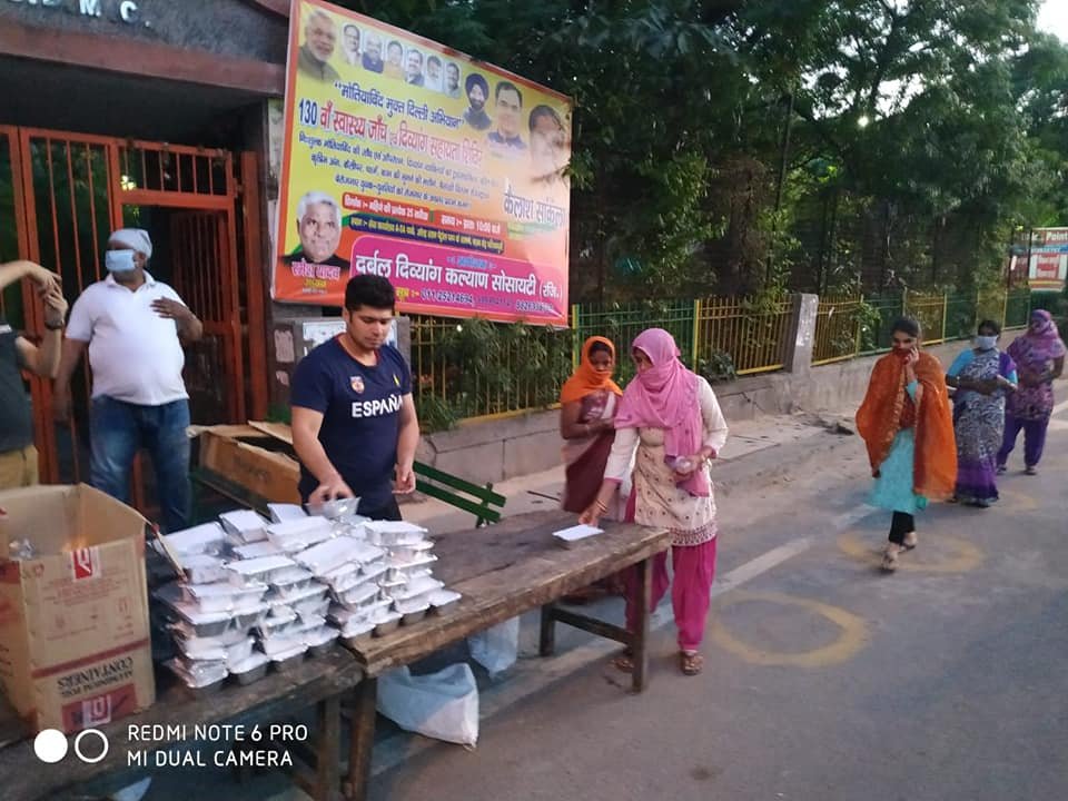 आज दिनांक 8 अप्रैल 2020 को तेरहवें दिन शाम को भी दुर्बल दिव्यांग कल्याण सोसायटी के तत्वाधान हजारों जरूरतमंदों को भोजन वितरण किया गया।