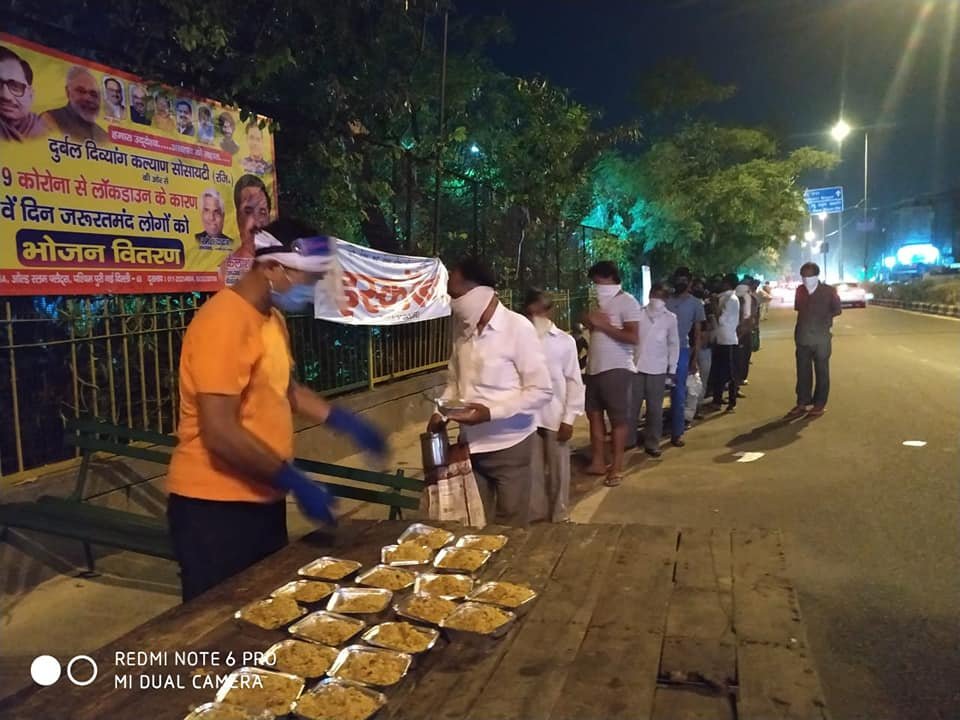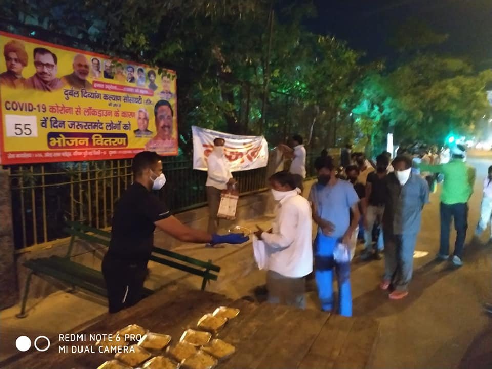 आज दिनांक 20 मई 2020 को परमपिता परमेश्वर की असीम कृपा से आज 55 वें दिन शाम को भी दुर्बल दिव्यांग कल्याण सोसायटी के तत्वाधान हजारों जरूरतमंदों को भोजन वितरण किया गया।