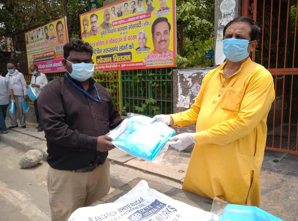 आज दिनांक 13 जून 2020 को 79 वें दिन भी दुर्बल दिव्यांग कल्याण सोसायटी के तत्वाधान PPE किट एवं मास्क नगर निगम स्वास्थ्य कर्मचारियों को बांटे गए ये वो कर्मचारी है जो कंटेन्मेंट जोन में भी घरों में सेनेटाइजर का कार्य करते है या जो मरीज कोरोना पोजटिव पाया जाता है उनके घरों में सेनेटाइज का कार्य करते है।