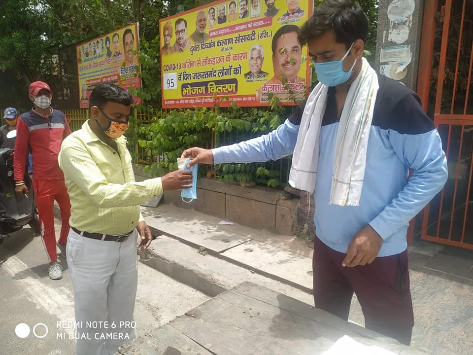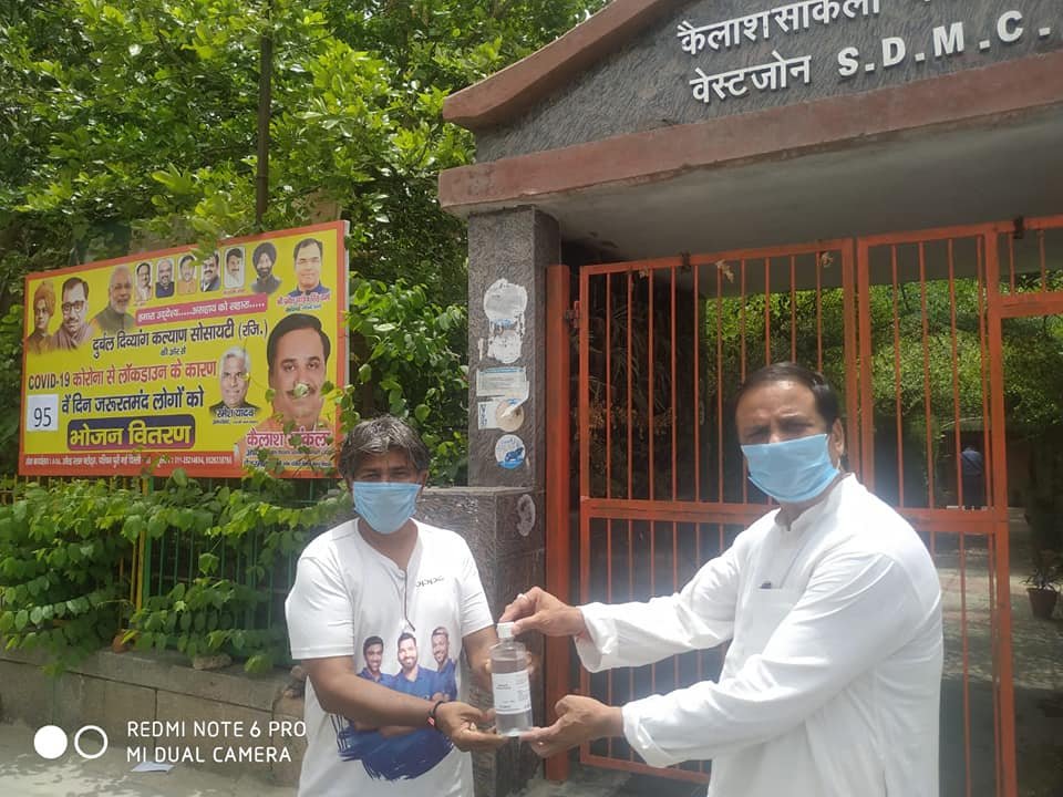 आज दिनांक 29 जून 2020 को 95 वें दिन दुर्बल दिव्यांग कल्याण सोसायटी5 तत्वावधान में आयुष विभाग द्वारा बताये आयुर्वेदिक काढ़ा, हैंड सेनेटाइजर व मार्क्स वितरण किए गए।