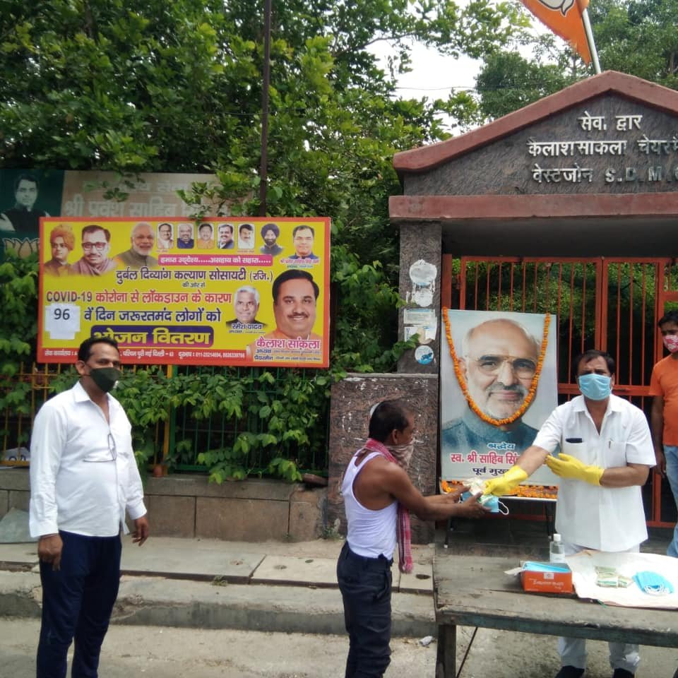 आज दिनांक 30 जून 2020 को दिल्ली के पूर्व मुख्यमंत्री श्रद्धेय डॉ. साहिब सिंह वर्मा जी की 13वीं पुण्यतिथि पर पुष्पांजलि अर्पित करके दुर्बल दिव्यांग कल्याण सोसायटी द्वारा 96 वें दिन आयुर्वेदिक काढ़ा, मास्क एवं हैंड सैनिटाइजर वितरण करके श्रद्धांजलि अर्पित की गई।