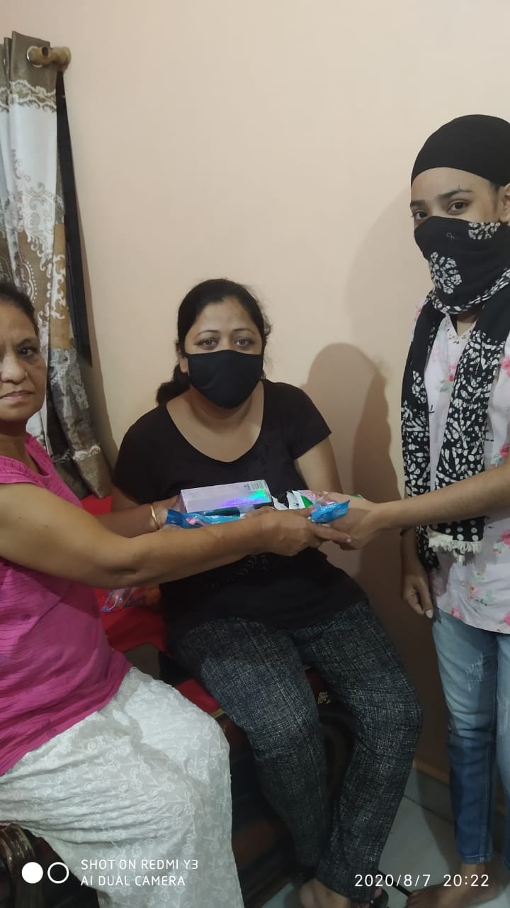 आज दिनांक 12 अगस्त 2020 को दुर्बल दिव्यांग कल्याण सोसायटी की ओर से महिलाओं को सेनेटरी पैड एवं हेयर रिमूवर वितरण किया गया ।
