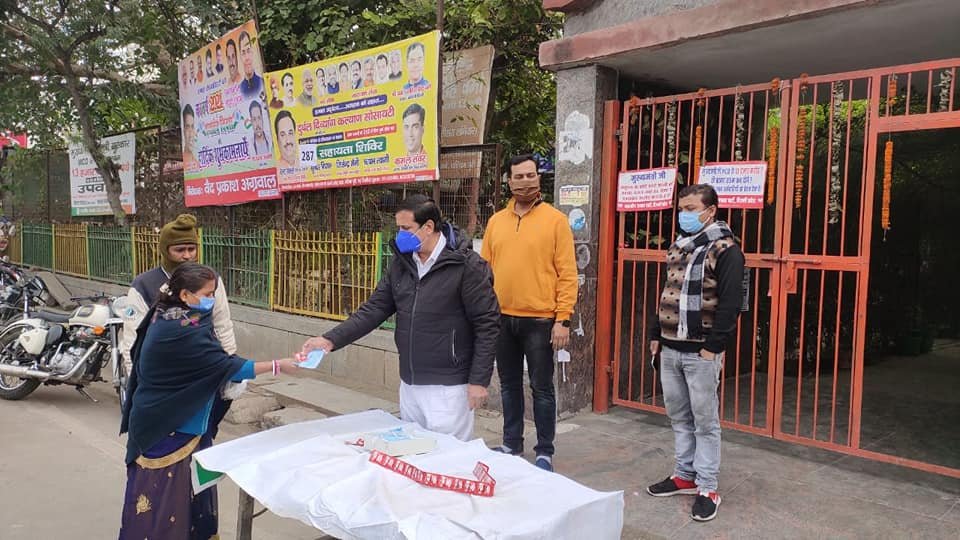आज दिनांक 8 जनवरी 2021 को 287 वें दिन दुर्बल दिव्यांग कल्याण सोसायटी के तत्वावधान में आयुर्वेदिक काढ़ा, सेनेटाइजर के पाऊच व मास्क वितरण किए गए।