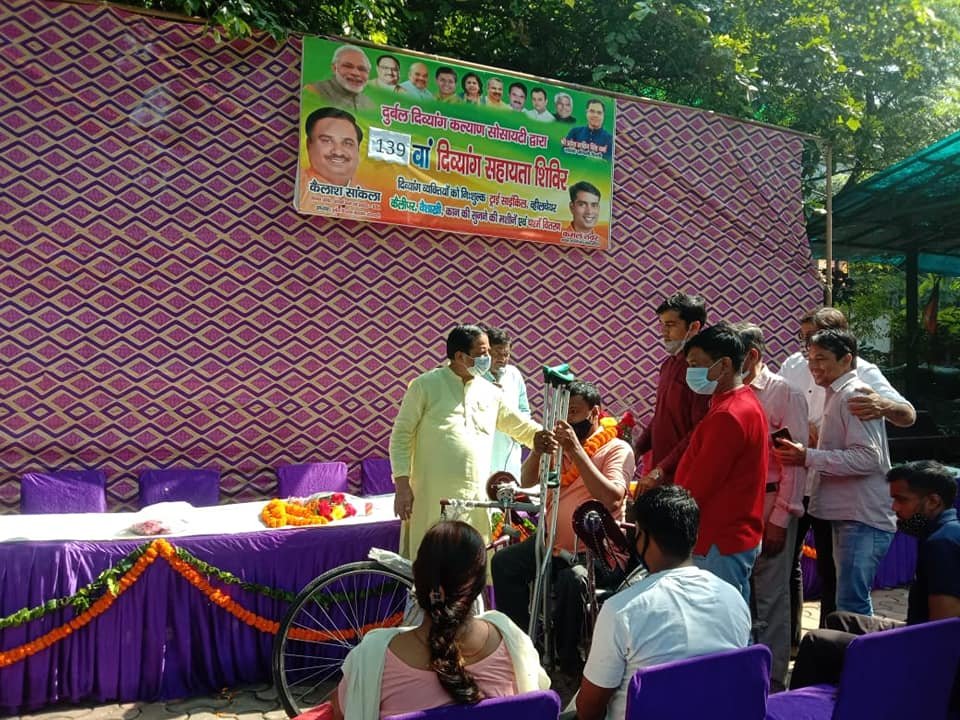 साईकल,व्हीलचेयर, ट्राईसाईकल, कान की सुनने की मशीनें, बैसाखी, बेरोजगार युवक युवतियों को रोजगार के अवसर दिए गए एवं चश्मे वितरण किए गए।