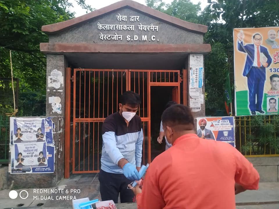 आज दिनांक 26 अप्रैल 2021 को परमपिता परमात्मा की असीम कृपा से दुर्बल दिव्यांग कल्याण सोसायटी के तत्वाधान करोना पार्ट 2 में भी जरूरतमंद लोगों को खाद्य समग्री, सैनिटाइजर, मास्क वितरण करते हुए।