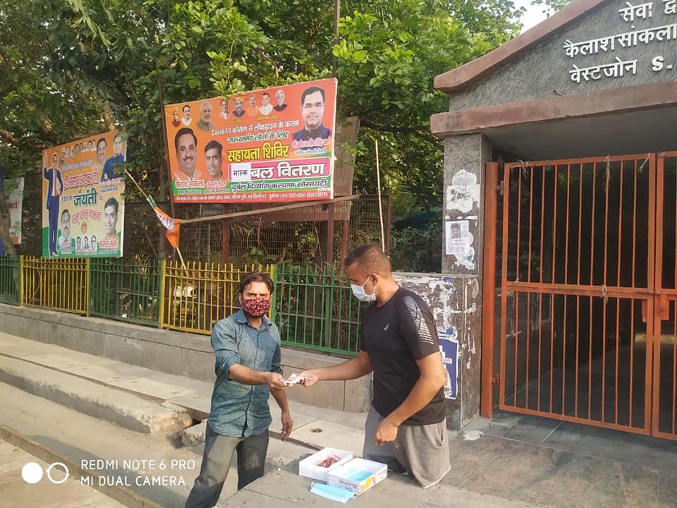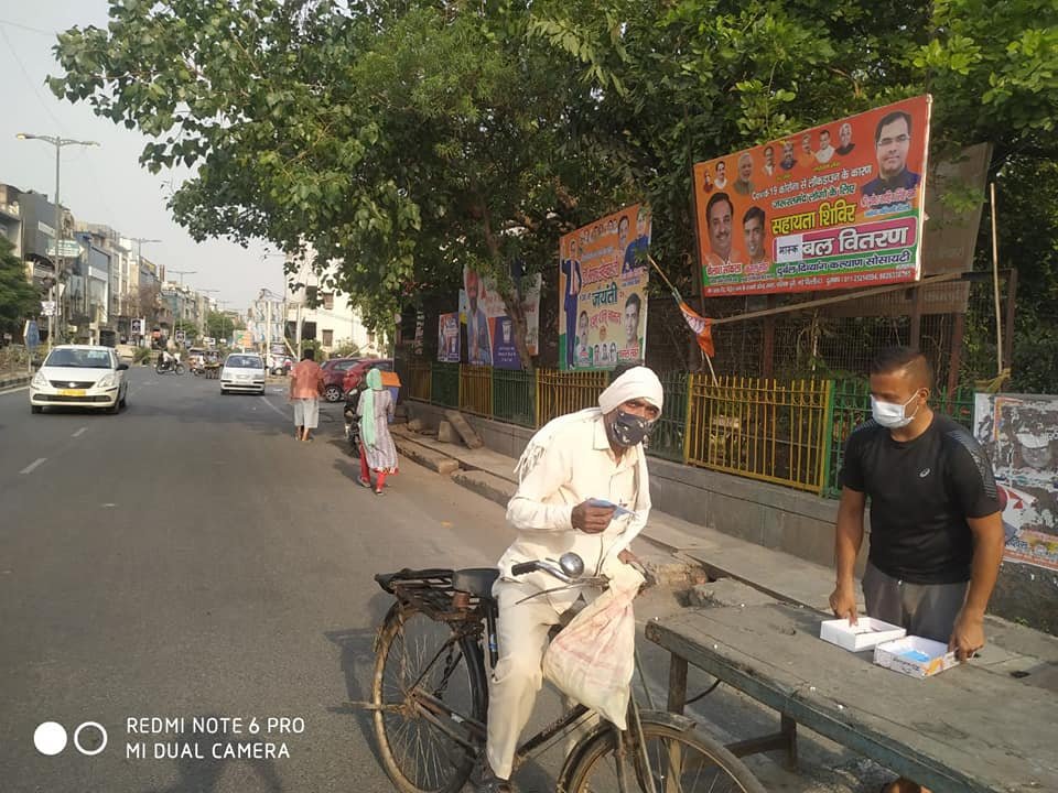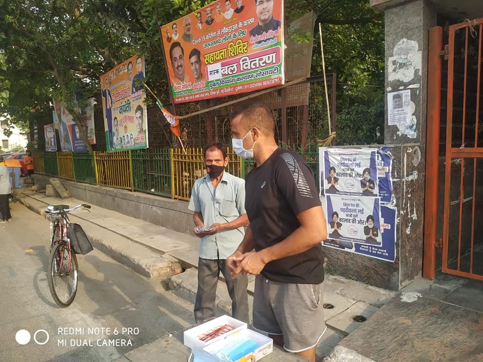 आज दिनांक 28 अप्रैल 2021 को प्रभु के असीम अनुकंपा से कोरोना संक्रमण से बचाव हेतु दुर्बल दिव्यांग कल्याण सोसायटी के तत्वाधान में अपने सेवा कार्यालय पंजाबी बाग क्लब रोड पेट्रोल पंप के सामने मास्क, हैंड सैनिटाइजर एवं आयुर्वेदिक काढ़ा वितरण किया गया। जरूरतमंद लोगों को उनके घर जाकर सूखा राशन भी वितरण किया गया।