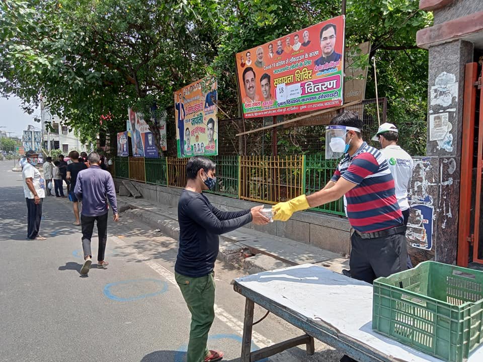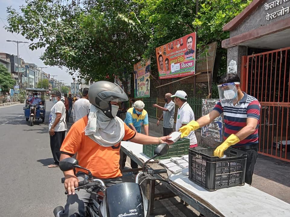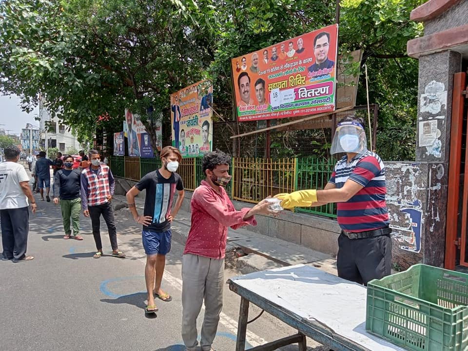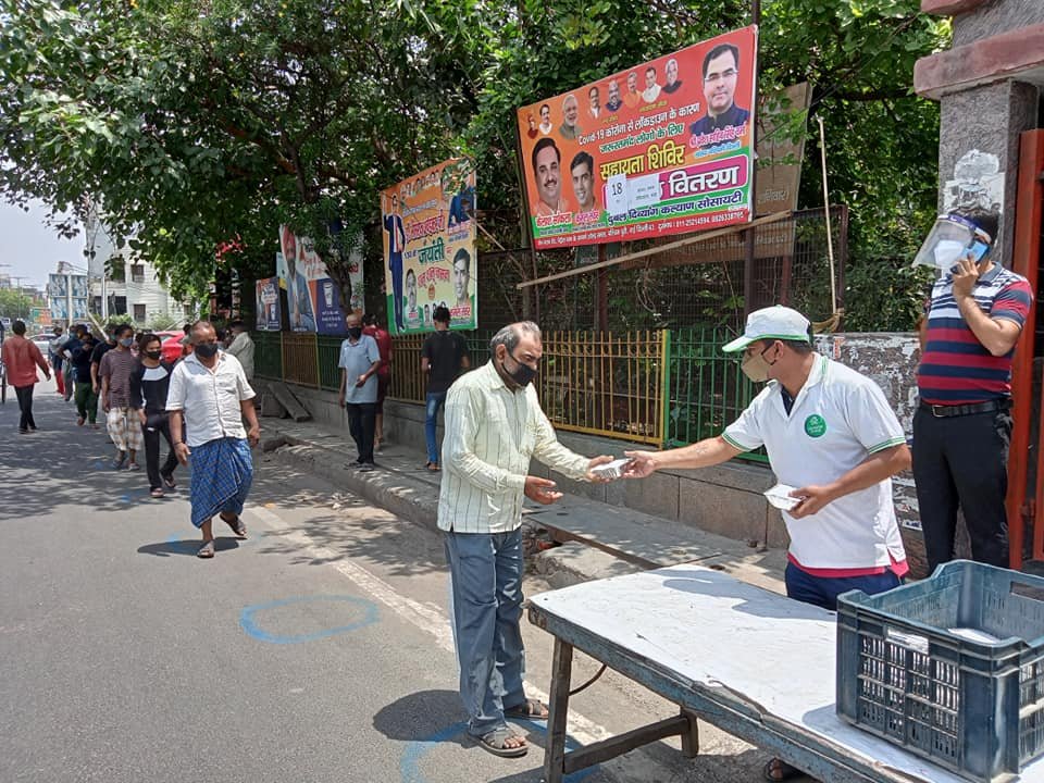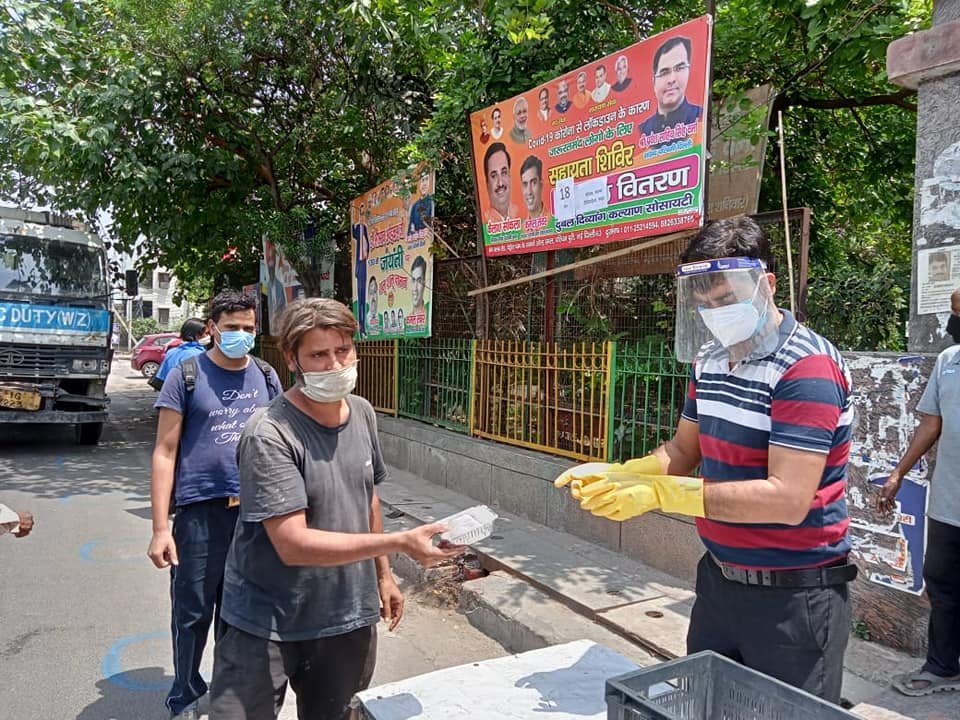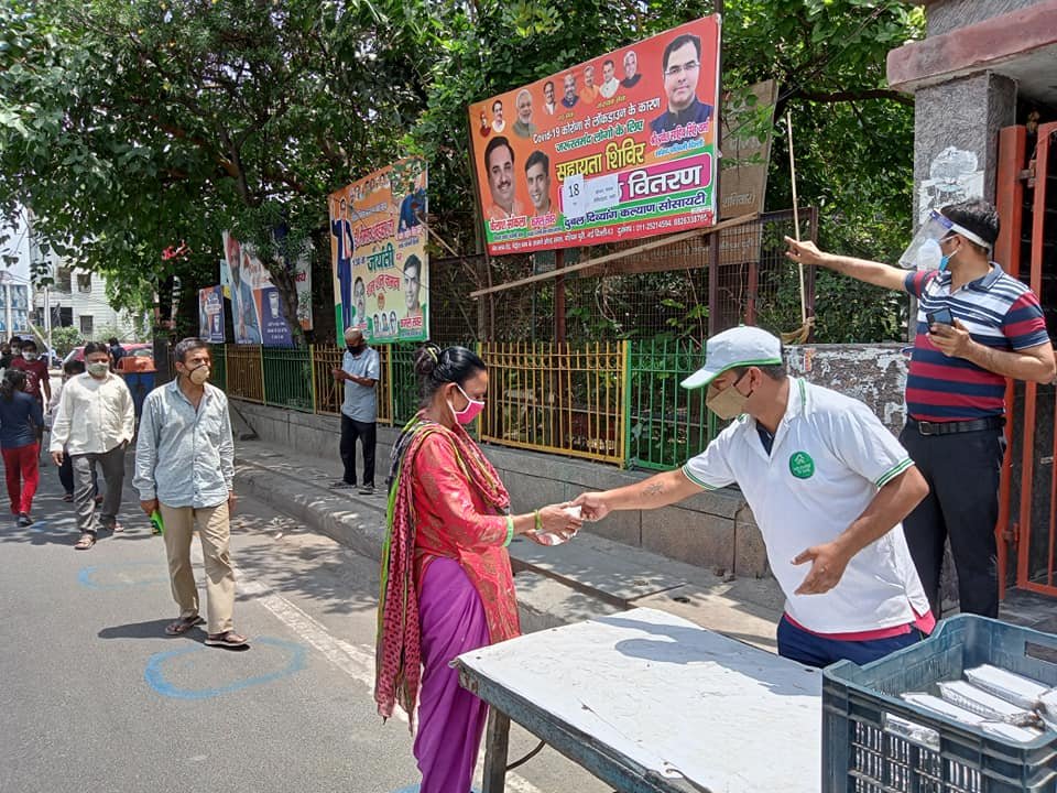 आज दिनांक 11 मई 2021 को कोरोना संकट काल लॉकडाउन पार्ट - 2 में दुर्बल दिव्यांग कल्याण सोसायटी के तत्वाधान में पंजाबी बाग क्लब रोड पेट्रोल पंप के सामने सेवा कार्यालय पर दिहाड़ी मजदूरों, दिव्यांग व्यक्तियों, सीनियर सिटीजन एवं कोरोना से पीड़ित परिवारों, जरूरतमंद लोगों को हाईजैनिक तरीके से तैयार किए गए भोजन एवं सुखा राशन, मास्क तथा सैनिटाइजर वितरण किए गए ।