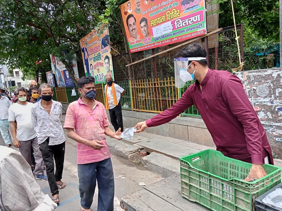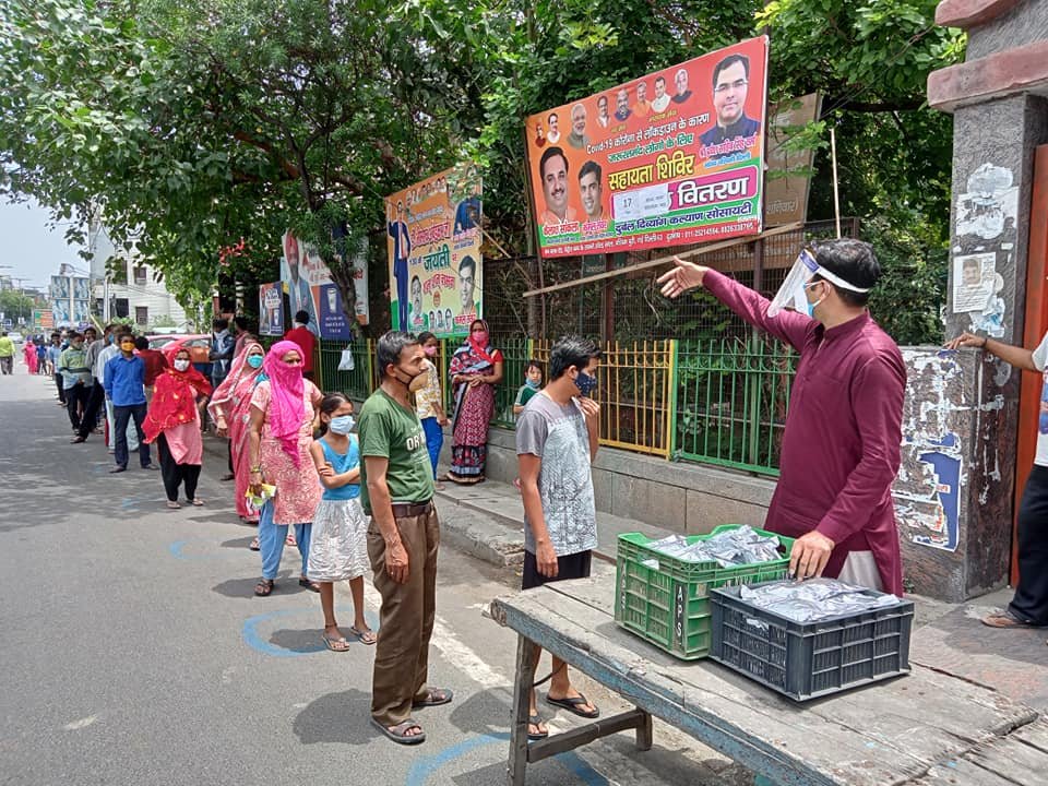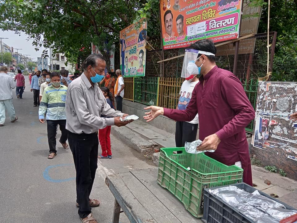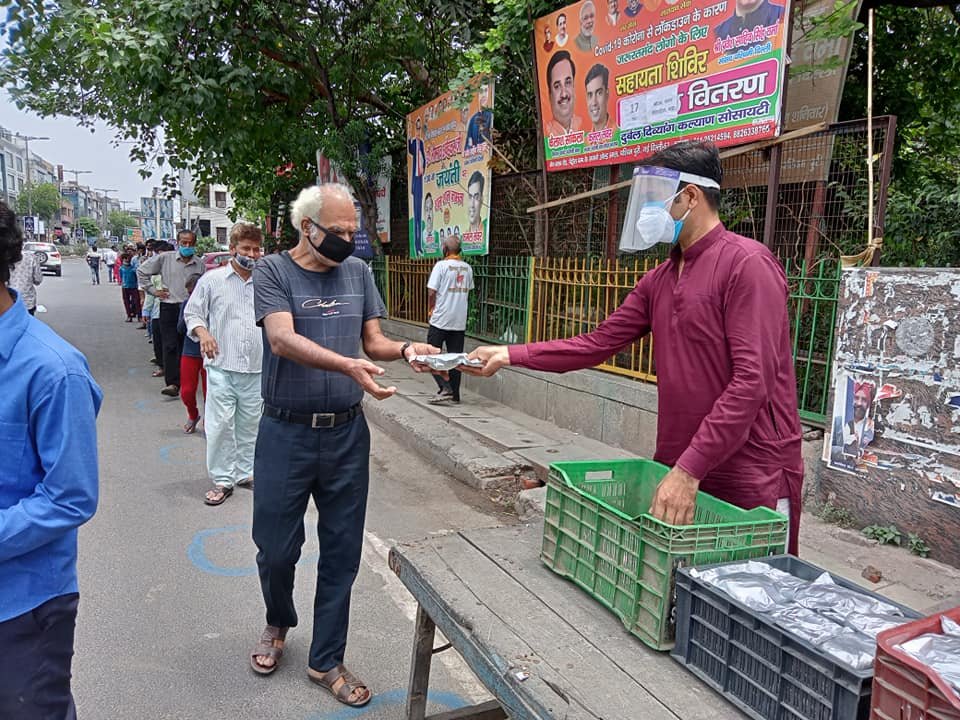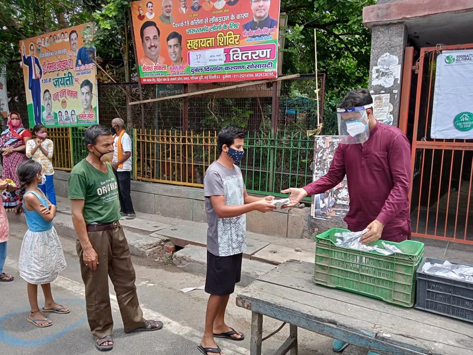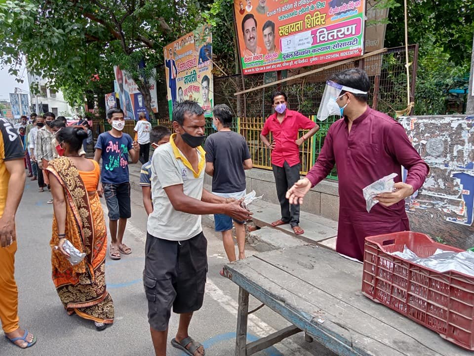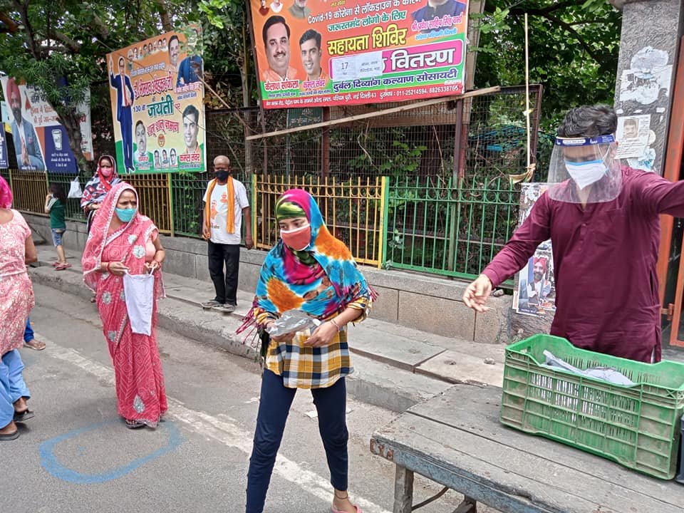 आज दिनांक 13 मई 2021 को कोरोना संकट काल लॉकडाउन पार्ट - 2 में दुर्बल दिव्यांग कल्याण सोसायटी के तत्वाधान में पंजाबी बाग क्लब रोड पेट्रोल पंप के सामने सेवा कार्यालय पर दिहाड़ी मजदूरों, दिव्यांग व्यक्तियों, सीनियर सिटीजन एवं कोरोना से पीड़ित परिवारों, जरूरतमंद लोगों को हाईजैनिक तरीके से तैयार किए गए भोजन एवं सुखा राशन, मास्क तथा सैनिटाइजर वितरण किए गए ।