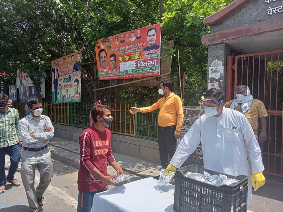 आज दिनांक 16 मई 2021 को कोरोना संकट काल लॉकडाउन पार्ट - 2 में दुर्बल दिव्यांग कल्याण सोसायटी के तत्वाधान में पंजाबी बाग क्लब रोड पेट्रोल पंप के सामने सेवा कार्यालय पर दिहाड़ी मजदूरों, दिव्यांग व्यक्तियों, सीनियर सिटीजन एवं कोरोना से पीड़ित परिवारों, जरूरतमंद लोगों को हाईजैनिक तरीके से तैयार किए गए भोजन एवं सुखा राशन, मास्क तथा सैनिटाइजर वितरण किए गए ।