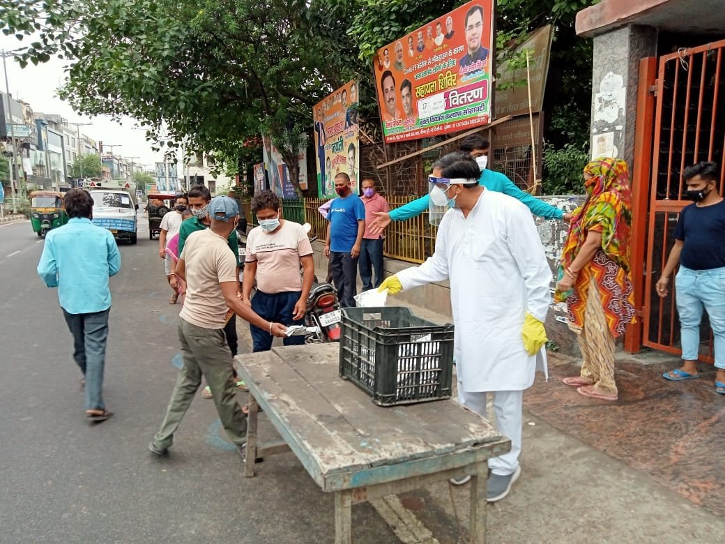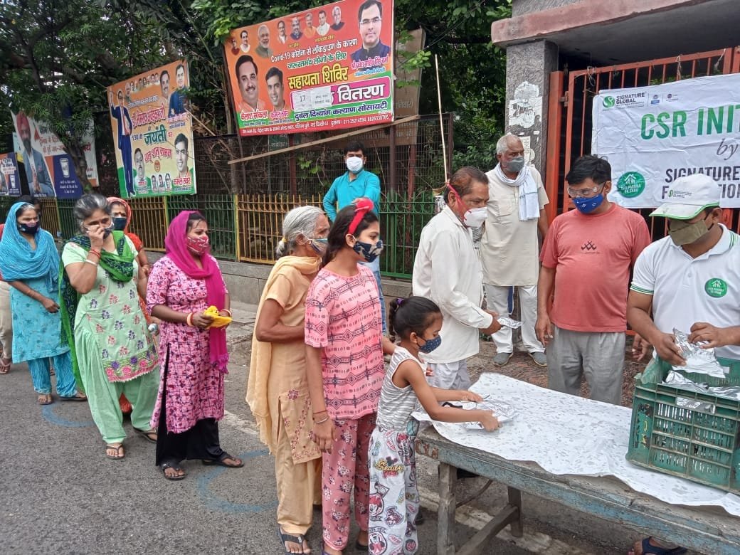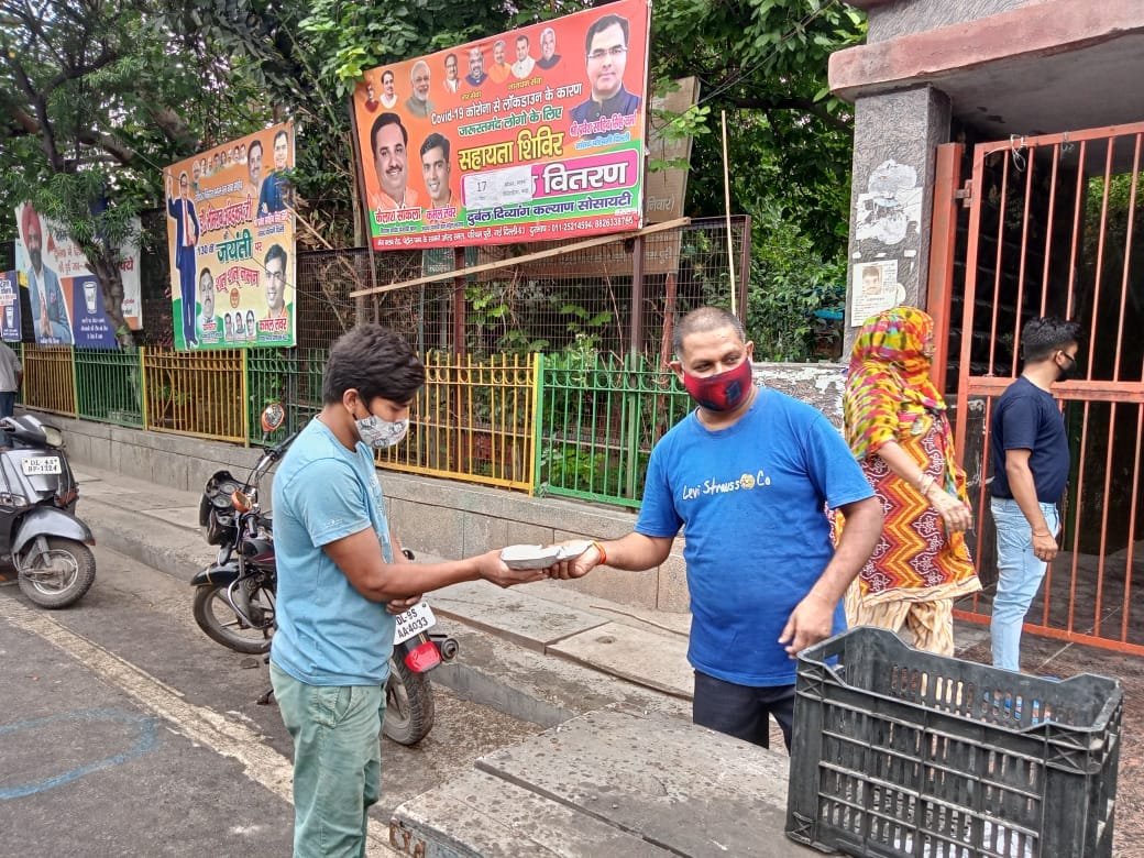 आज दिनांक 18 मई 2021 को कोरोना संकट काल लॉकडाउन पार्ट - 2 में दुर्बल दिव्यांग कल्याण सोसायटी के तत्वाधान में पंजाबी बाग क्लब रोड पेट्रोल पंप के सामने सेवा कार्यालय पर एवं झुग्गी सेवा बस्ती कैंपों में दिहाड़ी मजदूरों, दिव्यांग व्यक्तियों, सीनियर सिटीजन एवं कोरोना से पीड़ित परिवारों, जरूरतमंद लोगों को हाईजैनिक तरीके से तैयार किए गए भोजन एवं सुखा राशन, मास्क तथा सैनिटाइजर वितरण किए गए ।
