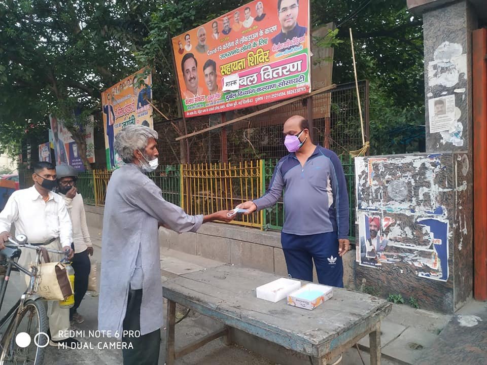 आज दिनांक 8 मई 2021 को प्रभु के असीम अनुकंपा से कोरोना संक्रमण से बचाव हेतु कोरोना काल पार्ट -2 में दुर्बल दिव्यांग कल्याण सोसायटी के तत्वाधान में अपने सेवा कार्यालय पंजाबी बाग क्लब रोड पेट्रोल पंप के सामने सूखा राशन, मास्क, हैंड सैनिटाइजर एवं आयुर्वेदिक काढ़ा वितरण किया गया।