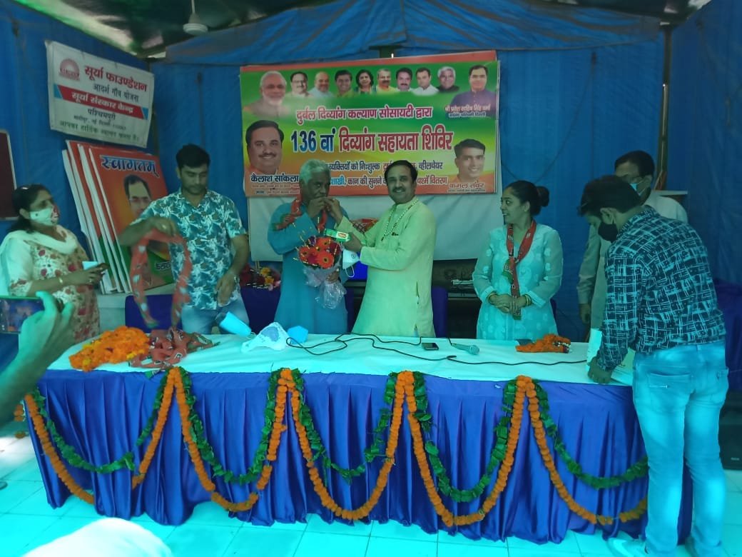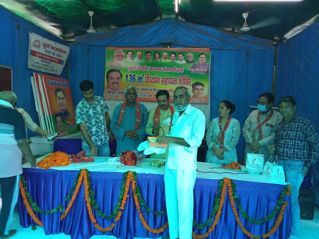आज दुर्बल दिव्यांग कल्याण सोसायटी के अध्यक्ष कैलाश सांकला द्वारा 136 वाॅ दिव्यांग सहायता शिविर आयोजित किया गया। जिसमें दिव्यांग व्यक्तियों को निशुल्क ट्राई साइकिल, व्हीचेयर, कैलीपर, कान की सुनने की मशीनें, वैशाखी, मोतियाबिंद के ऑपरेशन हेतु पंजीकरण किया गया।