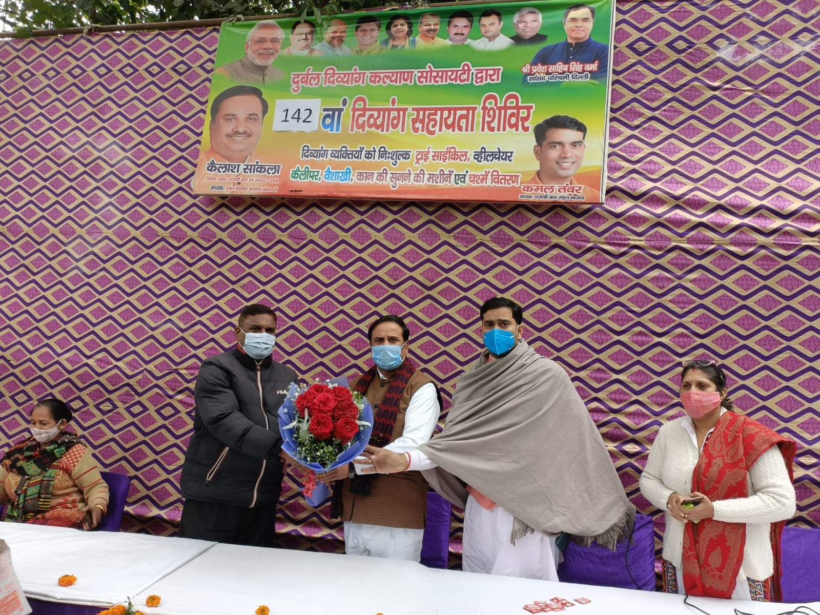 दुर्बल दिव्यांग कल्याण सोसायटी द्वारा 142 वा सहायता शिविर आयोजित किया गया। जिसमें जरूरतमंद दिव्यांग व्यक्तियों को नि:शुल्क ट्राईसाईकिल, व्हीलचेयर, कान की सुनने की मशीनें, कैलीपर, वैशाखी, बेरोजगार युवक-युवतियों के लिए रोजगार के अवसर प्रदान कराना एवं चश्मे इत्यादि वितरण किए गए। पश्चिमी जिला कार्यालय प्रभारी श्री रमेश यादव, पंजाबी बाग मंडल अध्यक्ष श्री कमल तंवर, मादीपुर मंडल अध्यक्ष श्री सुंदर निगम, महामंत्री एडवोकेट श्रीमती हर्षबाला, मंत्री श्रीमती राज साहनी, कुमारी मोनिका, श्रीमती अंजू देवी, श्री महेश निगम, श्रीमती मीनाक्षी शर्मा, श्री राजेश हरसौरा इत्यादि साथ रहें।