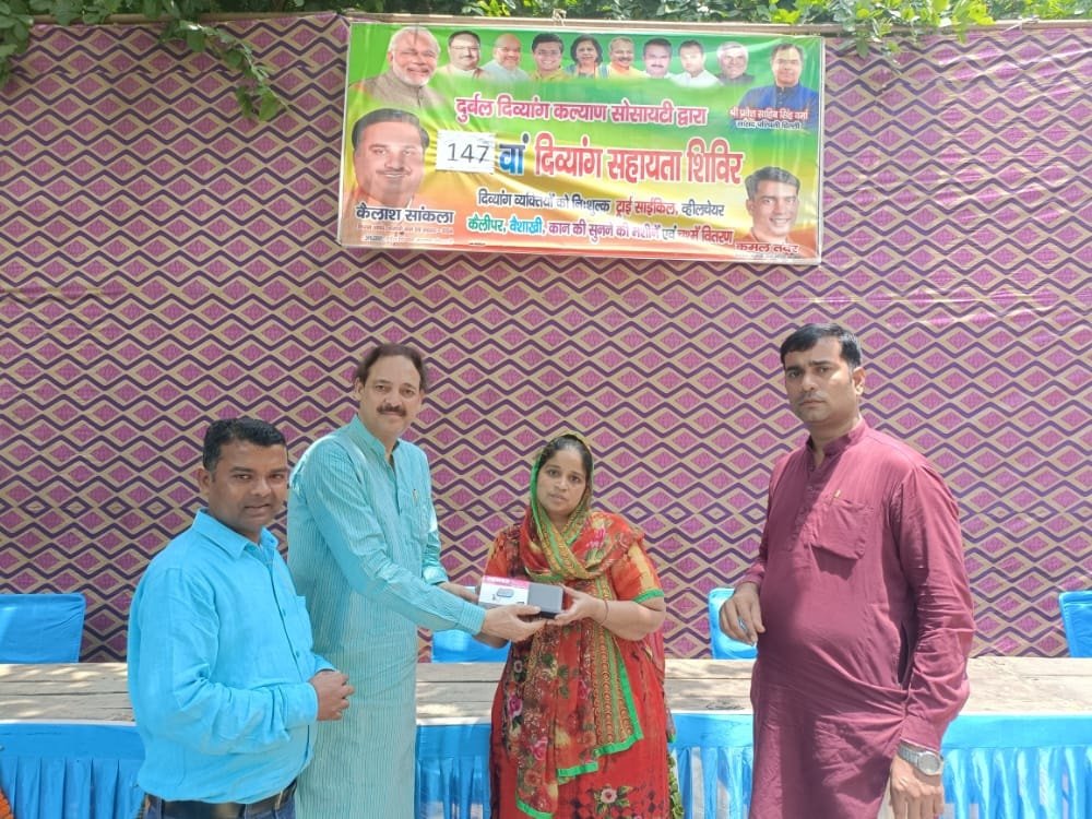 दुर्बल दिव्यांग कल्याण सोसायटी द्वारा पंजाबी बाग क्लब रोड पैट्रोल पंप के सामने स्थित सेवा कार्यालय पर #147_वें #दिव्यांग_सहायता_शिविर का आयोजन किया गया, जिसमें जरूरतमंद दिव्यांग व्यक्तियों को नि:शुल्क ट्राई साइकिल, व्हीलचेयर, कान की सुनने की मशीनें, वैशाखी, वॉकर, कृत्रिम अंग, एवं चश्मे वितरण किए गए। बेरोजगार युवक युवतियों के लिए रोजगार के अवसर एवम मोतियाबिंद मुक्त दिल्ली अभियान के तहत ऑपरेशन के लिए पंजीकरण किया गया। इस दिव्यांग सहायता शिविर में सैकड़ों लोग लाभान्वित हुए। कार्यक्रम के पश्चात विशाल भंडारे का भी आयोजन किया गया।