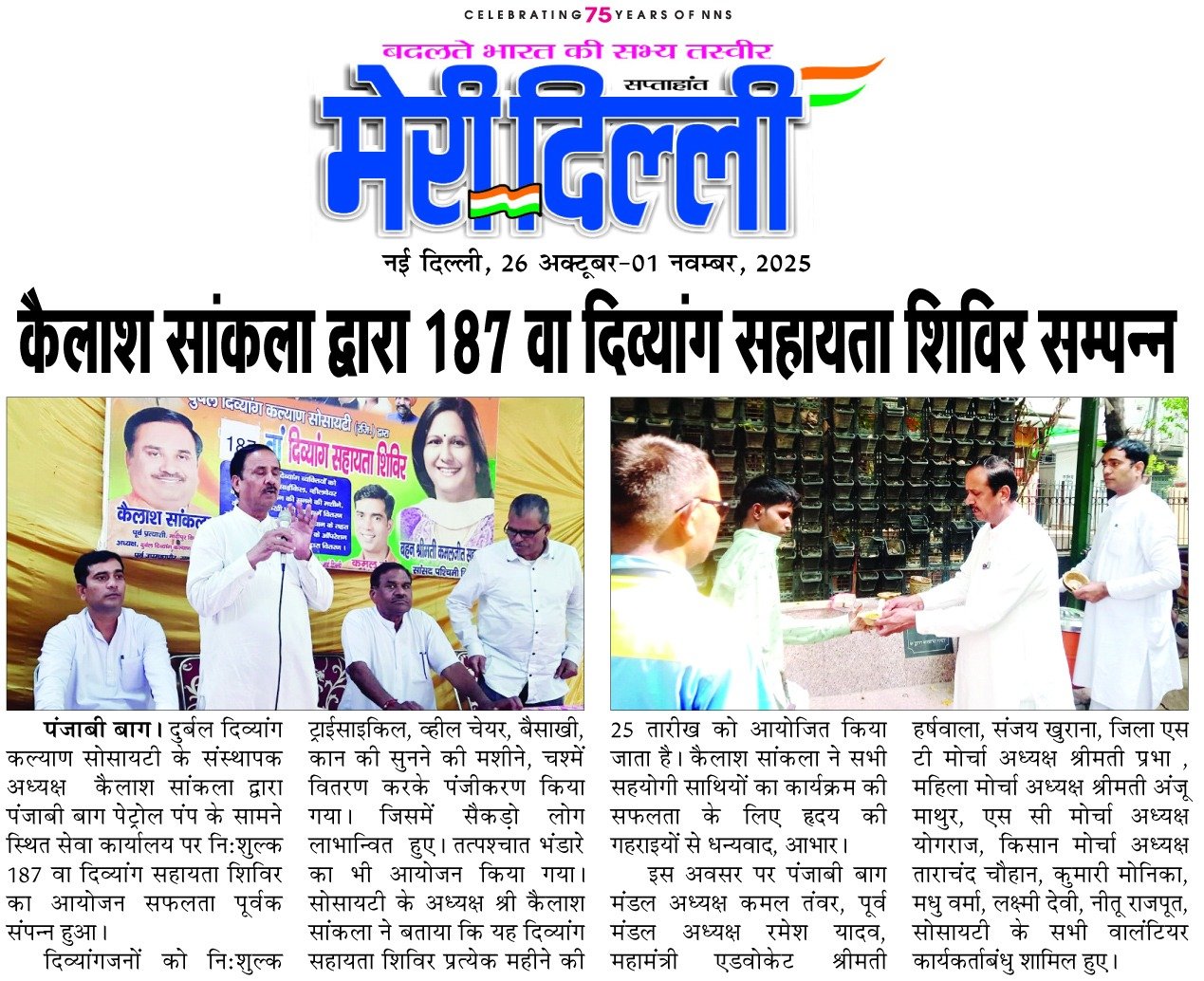 दुर्बल दिव्यांग कल्याण सोसायटी द्वारा 187 वा सहायता शिविर के आयोजन की समाचार में प्रकाशित खबरें !