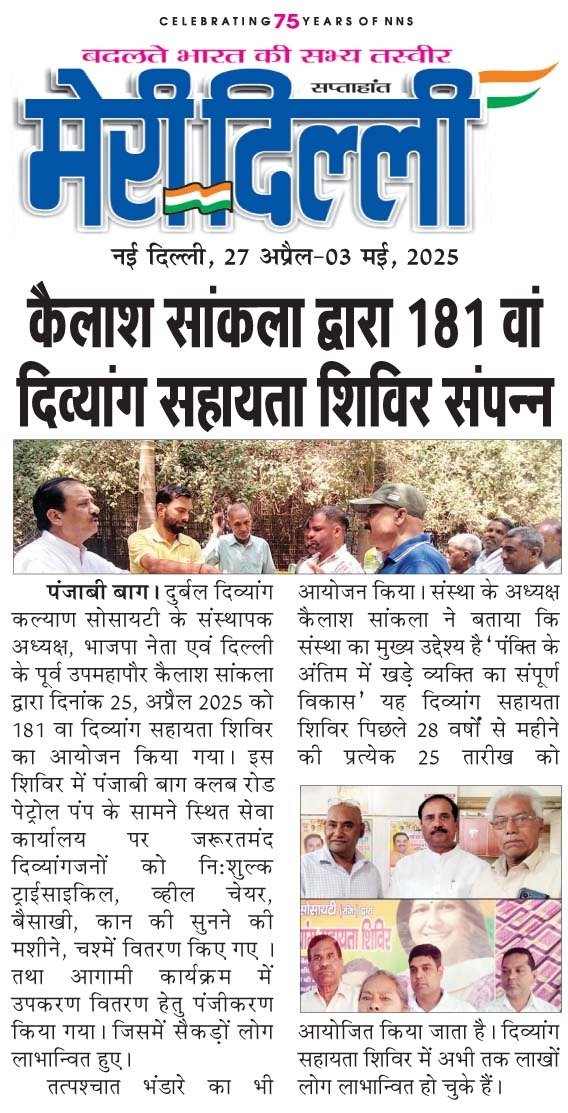 दुर्बल दिव्यांग कल्याण सोसायटी के तत्वाधान में दिव्यांग लोगों के सहायतार्थ किए जा रहे सेवा कार्यों की समाचार पत्रों में प्रकाशित खबरें।