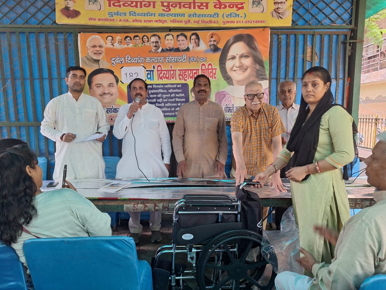 आज दिनांक 25, मई 2025 को "दुर्बल दिव्यांग कल्याण सोसायटी" के संस्थापक अध्यक्ष श्री कैलाश सांकला द्वारा 182 वा ""दिव्यांग सहायता शिविर"" पंजाबी बाग स्थित सेवा कार्यालय पर जरूरतमंद दिव्यांगजनों को नि:शुल्क ट्राईसाइकिल, व्हील चेयर, बैसाखी, कान की सुनने की मशीने, चश्में वितरण करके, पंजीकरण किया गया। जिसमें सैकड़ों लोग लाभान्वित हुए। तत्पश्चात भंडारे का भी आयोजन किया।