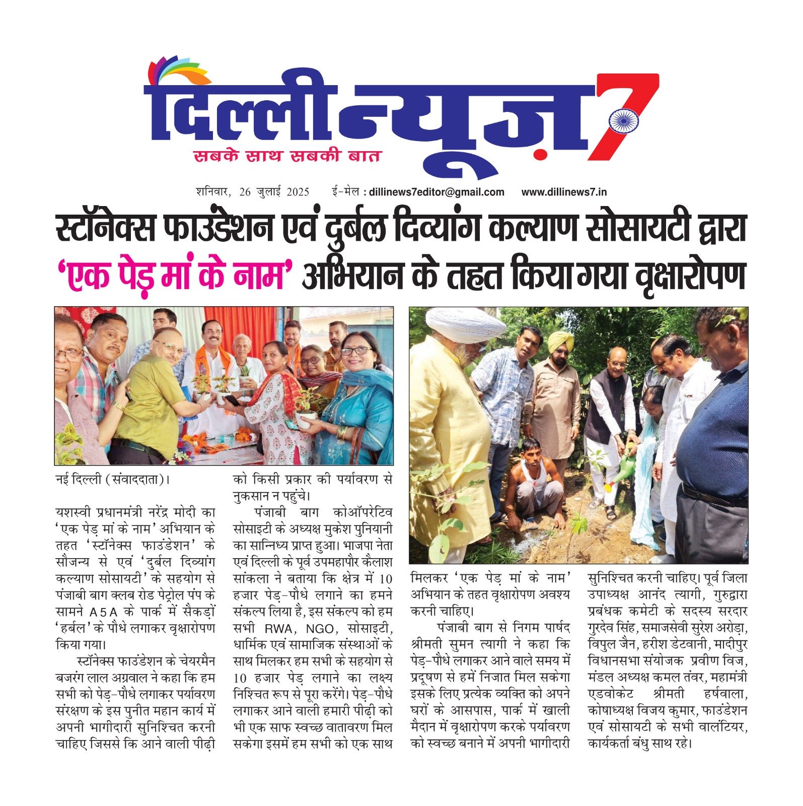 दुर्बल दिव्यांग कल्याण सोसायटी द्वारा किए गए कार्यों की समाचार पत्र में प्रकाशित खबरें ।