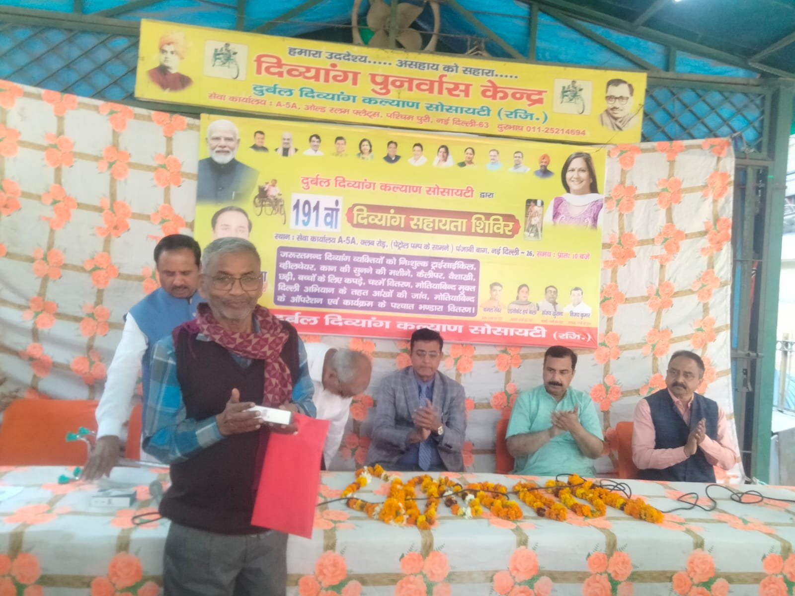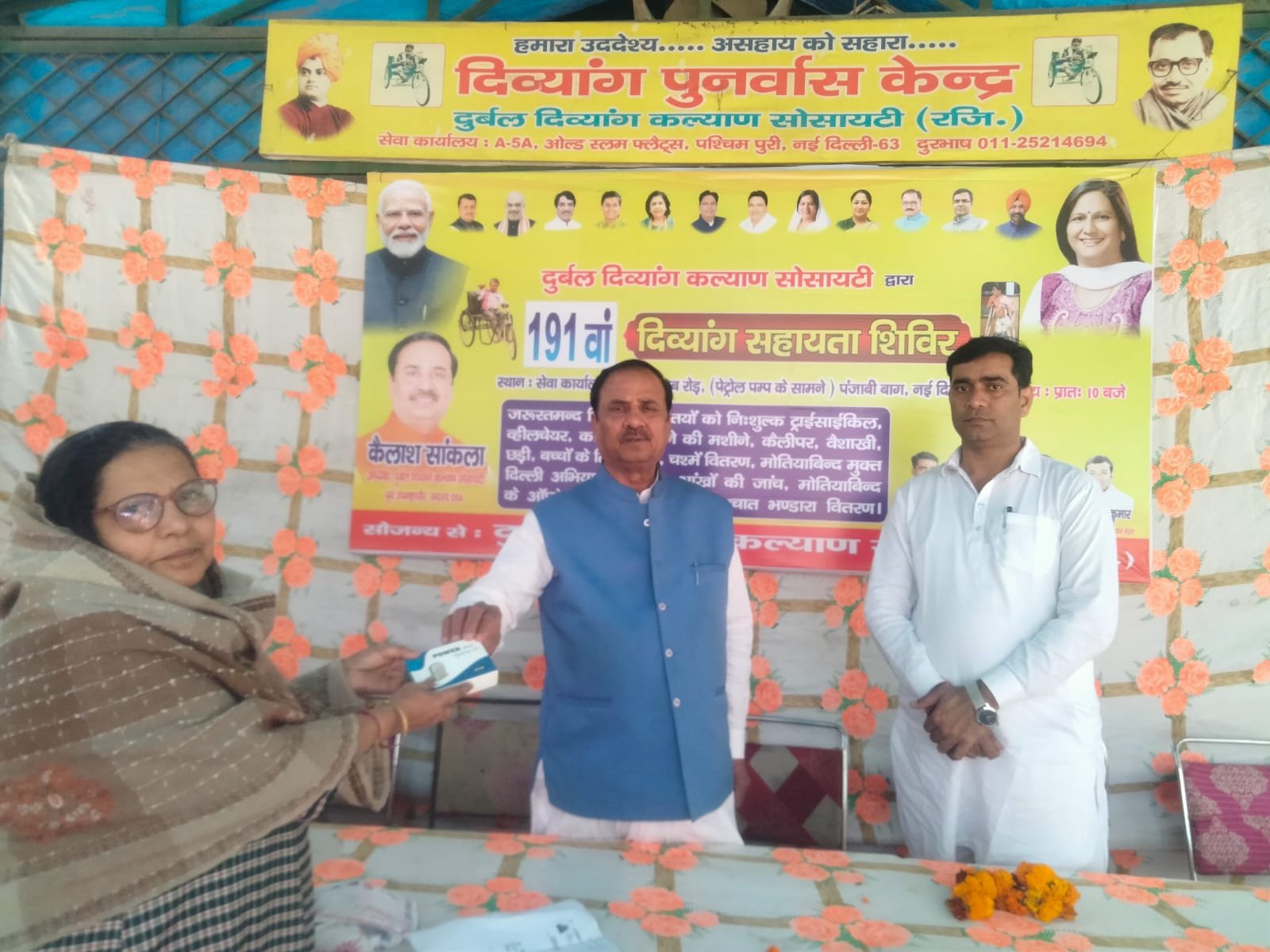 आज "दुर्बल दिव्यांग कल्याण सोसायटी" द्वारा 191 वा #दिव्यांग_सहायता_शिविर पंजाबी बाग क्लब रोड पेट्रोल पंप के सामने स्थित सेवा कार्यालय पर आयोजित किया गया। राष्ट्रीय स्वयंसेवक संघ के वरिष्ठ स्वयंसेवक माननीय श्री मुकेश पुनियानी जी का सानिध्य प्राप्त हुआ।